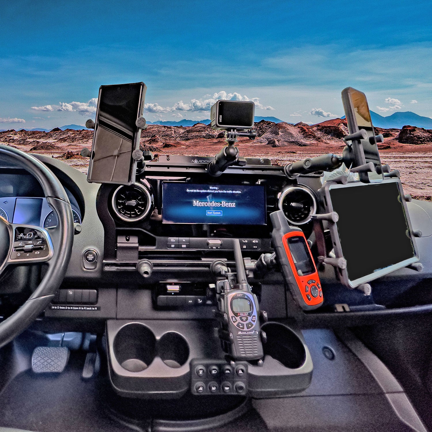 Secure your phones, dash cams, tablets, GPS devices, lighting, and more with our organization solutions made specifically for Mercedes Sprinter Vans.