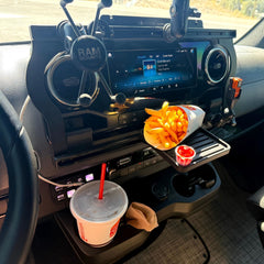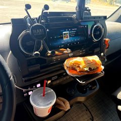The Navi-Tray is a versatile tray that mounts securely to your Navidok Overlander or Overlander X dash mount system — perfect for holding a sandwich, snack, pen, or notepad while on the road.